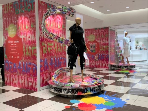 「だって わたしの クリスマス」をテーマに全店でプロモーションを展開しているそごう・西武のクリスマス。店頭のクリスマスデコレーションには国内外で活躍するsnipe1(スナイプワン)、ZOSEN&Mina Hamada(ソーセン&ミナ ハマダ)、FATE(フェイト)、KOMESENNNIN9(コメセンニンナイン)の計4人のアーティストを起用し、個性的なアートが各店のクリスマスを盛り上げます。西武池袋本店の明治通り沿いの外壁とウインドーには長さ最大30mのグラフィティアートが登場。サンタが落書きしたかのような可愛らしい演出や光るネオン管に道行く人も思わず立ち止まります。外壁の他に店内の売場や階段など、このクリスマスの為に描かれたスペシャルなアートが西武池袋本店を埋め尽くします。