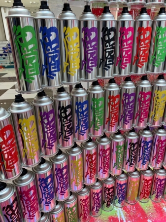 ディスプレイにはスプレー缶を用いたオブジェが。缶にはSEIBUの文字が描かれています。