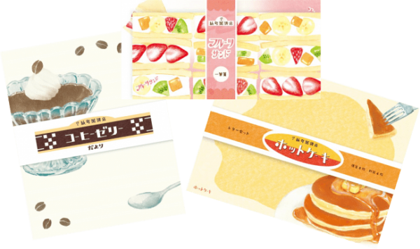 モーニングトーストやコーヒーカップのデザインのミニレターセットや一筆箋など。
