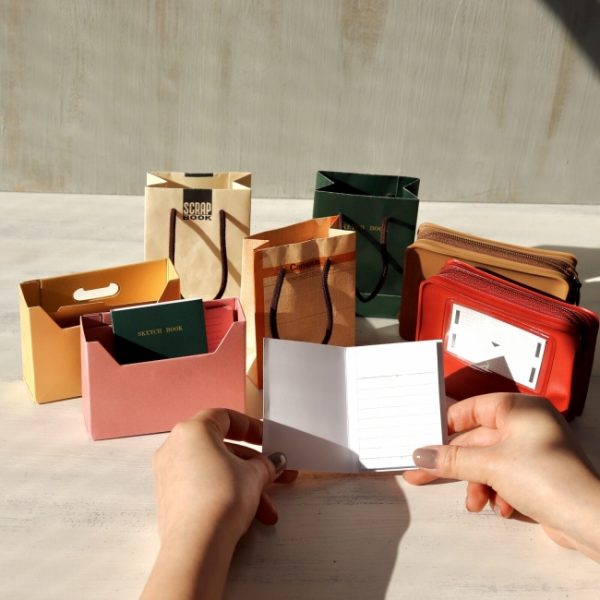 ファイルボックスやノートなどの馴染み深い文房具がミニサイズになって勢ぞろい。