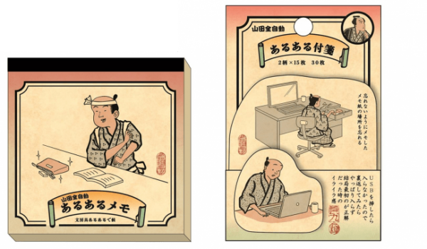 SNSで大人気のイラストレーター・山田全自動氏による、日常の“あるある”を浮世絵風に表したイラストのクリアファイルや付箋、ノートなどをシリーズ展開。