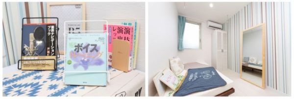 姿見や演劇等の教本を揃えたこの部屋は、入居者同士で台本の読み合わせやボイストレーニングに最適!