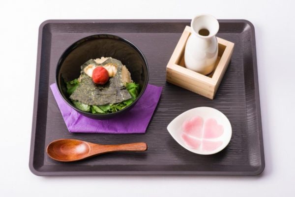 スサノオとクシナダをモチーフにしたお茶漬けです。スサノオの顔を模したご飯に、クシナダの思いが込められた銘酒(酒粕をベースにした和風出汁)をかけ召し上がっていただきます。スサノオも酔いしれる逸品です。