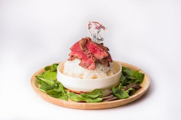 新鮮なお肉が贅沢に乗った、お腹が減った八犬士も大満足のどんぶりメニュー。バターライスと、フライドガーリック・オニオンが食欲をそそります。お肉好きなお客様にはたまらない逸品です。