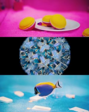 ③ 投稿するなら あえて、水色と、ピンクを交互に3枚の写真を1枚にコラージュすることで、より鮮やかに。アプリは無料のPicsArt