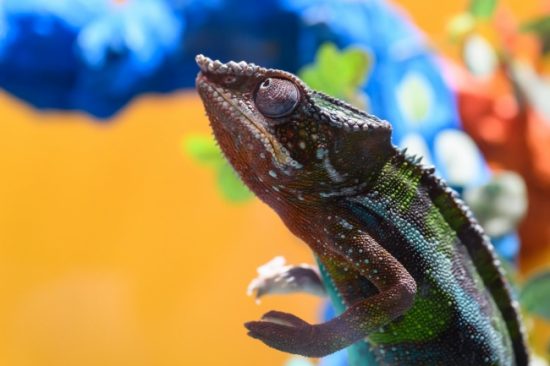 白い世界に迷い込んだ不思議な感覚を堪能することができます。白の世界のラストのコーナーに展示されている「パンサーカメレオン」は、次の“カラフルエリア”の空間へ誘います。