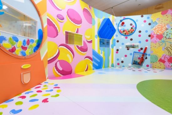 またこちらのエリアでは大きな壁面をキャンパスにし、お客様自身が蛍光シールを貼ってアートを完成させる参加型アートも展開いたします。