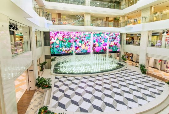 四層吹き抜けの噴水広場を生かして銭湯をイメージした巨大な暖簾を吊り、銭湯に描かれている富士山などのペンキ絵を628インチの巨大ビジョンに映し、畳シートを敷いたステージの上でゆず湯など数種類の足湯を楽しめます。