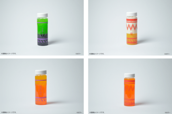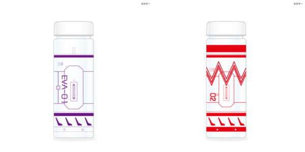 エントリープラグをモチーフにしたクリアボトルにエヴァのイメージカラードリンクを入れたオリジナル商品です。クリアボトルは「MAZARIA STORE」でもお買い求めいただけます。