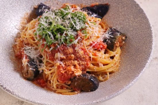 鶏そぼろと茄子の味噌トマト 1130円(税抜)