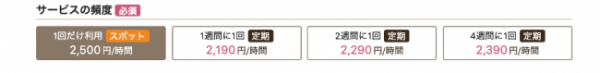 3)依頼画面に遷移後、サービスの頻度で「1回だけ利用 2,500円/時間」を選択。