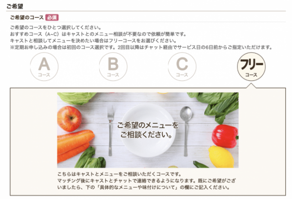 2)「お料理代行を依頼」を選択。