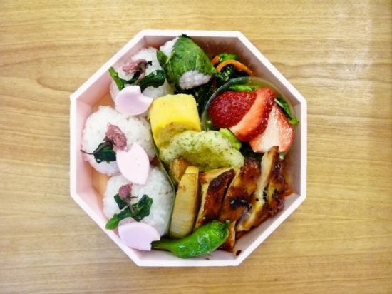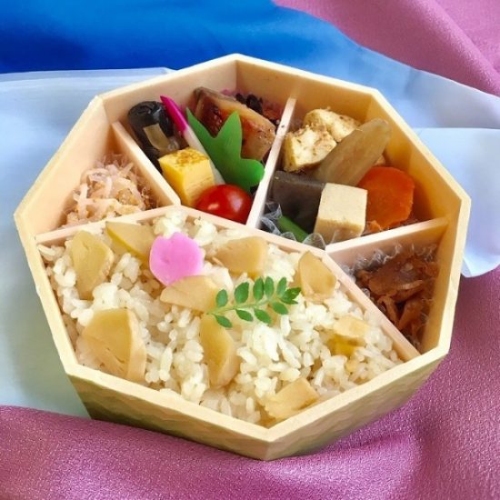 鰆、菜の花、筍、旬の食材を使ったおかずが春らしく、美しいお弁当