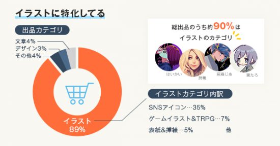 総出品数のなんと約90%はイラストカテゴリからの出品となっています。