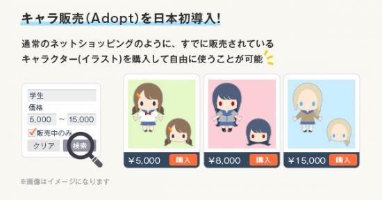 2,キャラ販売(Adopt)を日本初導入