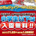 サンシャインシティのテーマパーク「J-WORLD TOKYO(ジェイワールドトウキョウ)」では、オープンから5周年を記念して今月(2017年11月)23日(木・祝)から来年1月28日までの間、高校生以上の引率時には、小学 …
